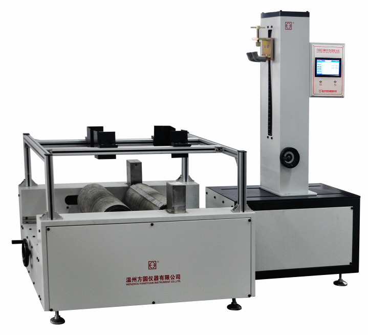 原理:在箱包中加載規(guī)定的負(fù)重,利用輥轉(zhuǎn)動時與試樣走輪相互間的摩擦、撞擊,對箱包產(chǎn)生沖擊振蕩和磨損,模擬箱包行走時的使用狀況作連續(xù)行走測試,檢驗箱包走輪、輪軸、輪架、拉桿、箱體質(zhì)量,計算走輪的磨損量。